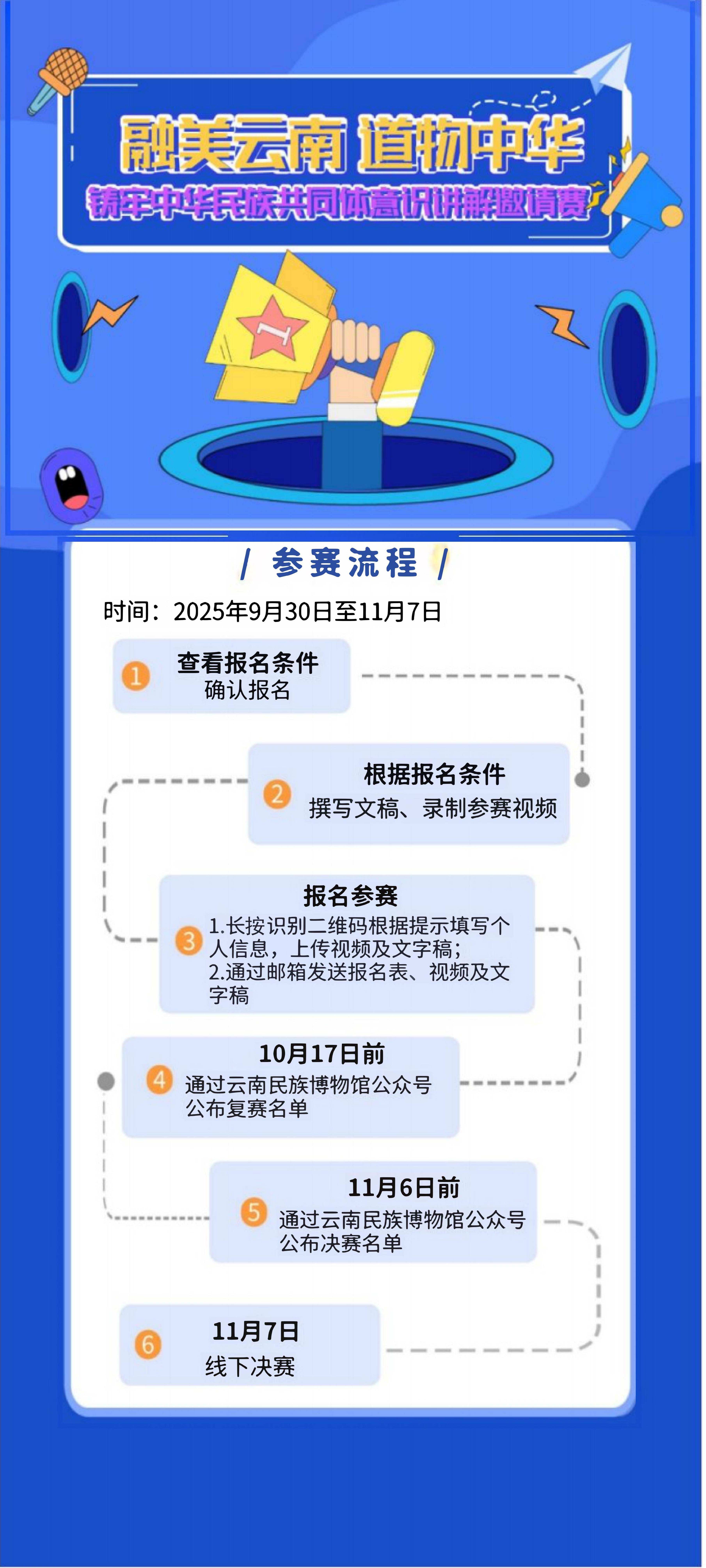 决赛采取线下评选,最终入围选手将于11月7日在云南民族博物馆进行现场比赛。